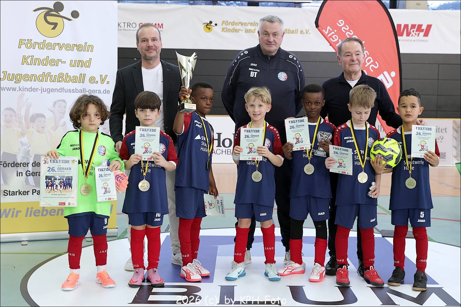 Der VfL Halle 96 hat sich den 26. Geraer Bambini-Cup der U8-Junioren im Hallenfußball gesichert. In Abwesenheit von Tennis Borussia Berlin, das in Absehbarkeit des Wintereinbruchs kurzfristig abgesagte, blieben die Hallenser als einziges Team im Feld der acht Mannschaften ohne Niederlage.